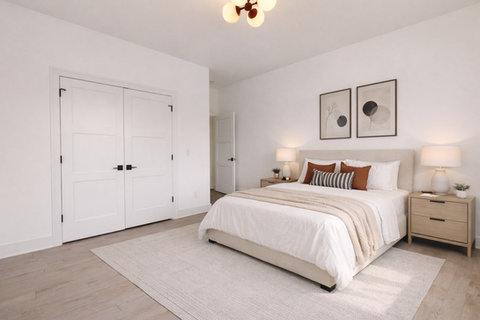Spa-inspired owner’s suite with tile shower and large WIC