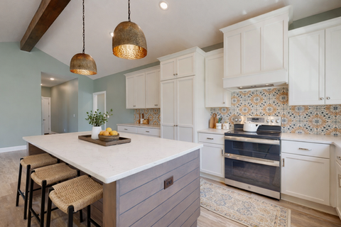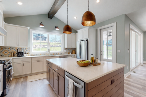 Open-concept great room with vaulted ceilings
